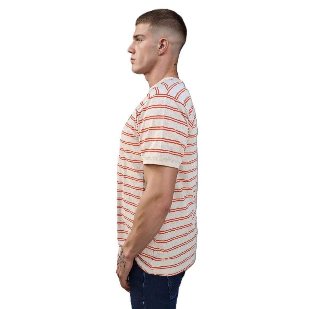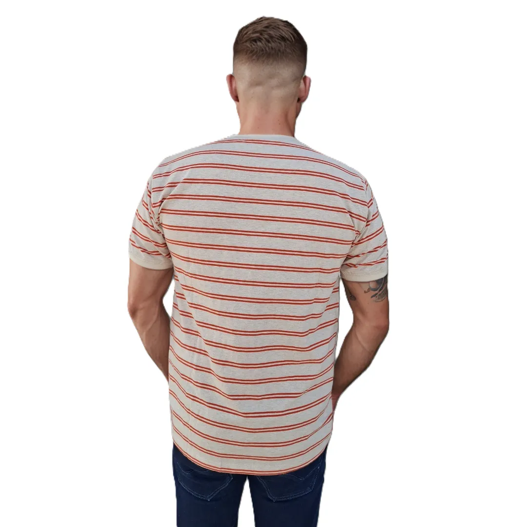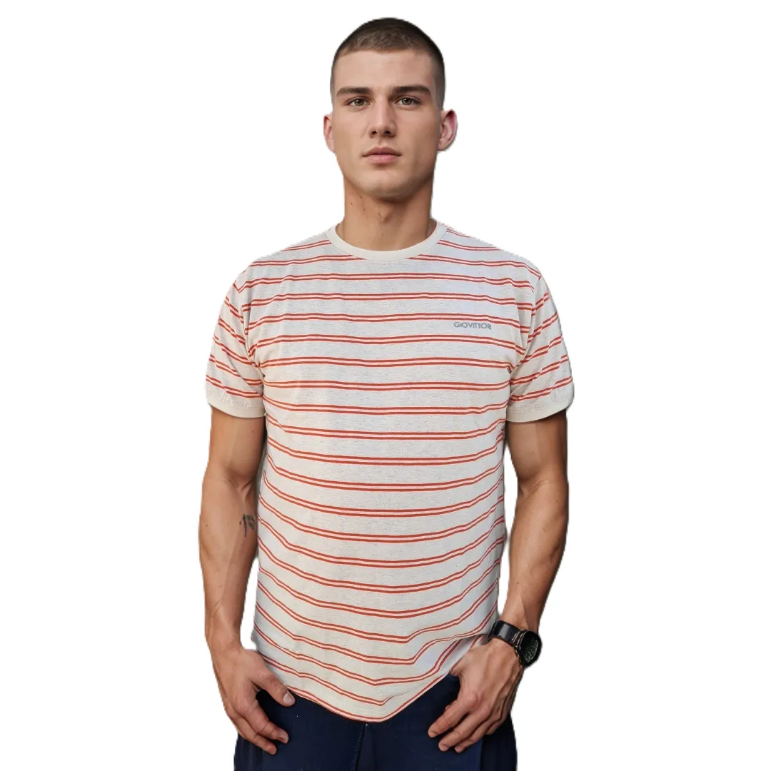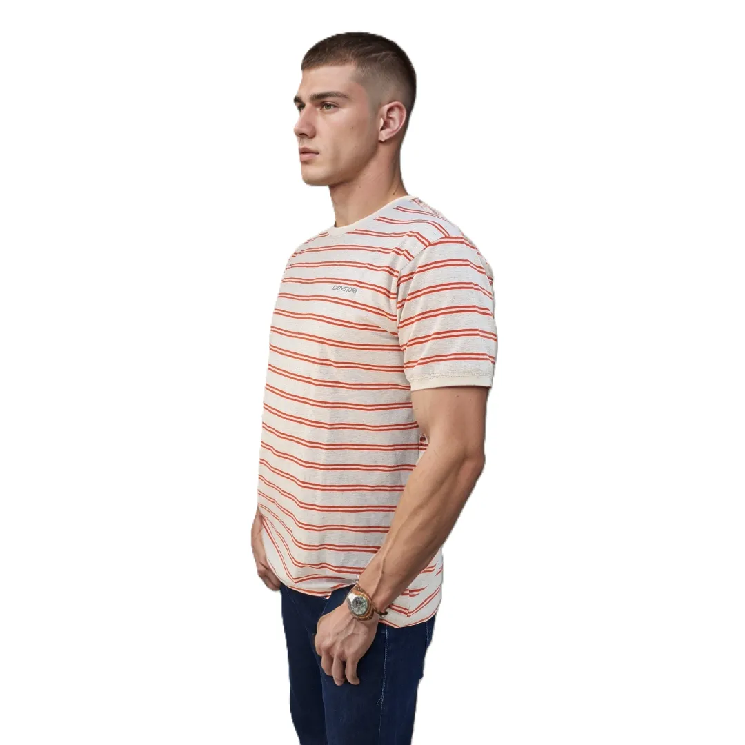 Classic Striped Cotton-Elastane T-Shirt, Round Neck, Short Sleeve, Creme/Orange