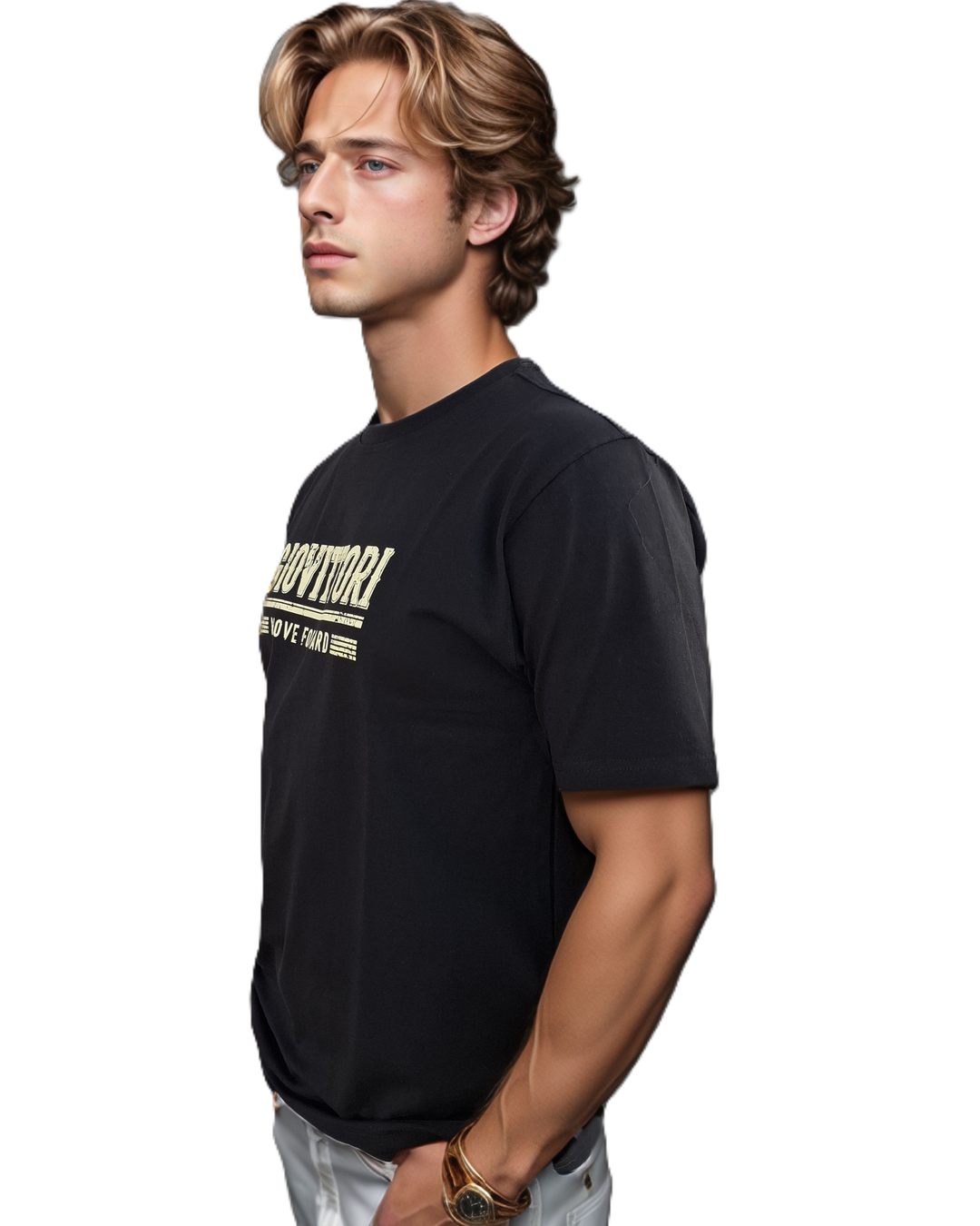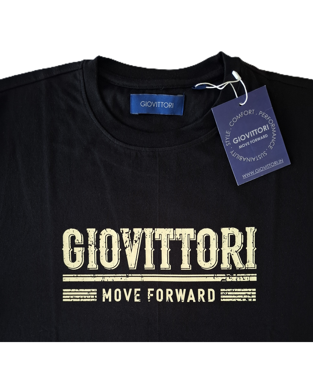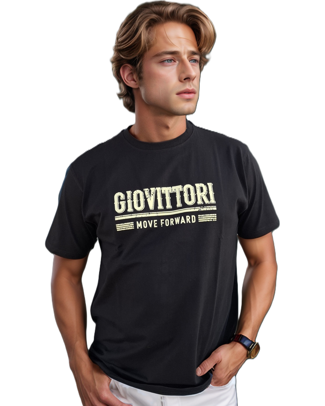+ Free ShippingMake a bold style statement with this sophisticated GIOVITTORI t-shirt in a trendy Black shade. Crafted from 100% cotton, this short-sleeve t-shirt offers supreme comfort and breathability for all-day wear. The classic round neck design is complemented by the striking ‘GIOVITTORI MOVE FORWARD’ typography print, adding a contemporary urban appeal. The relaxed fit ensures unrestricted movement, while the premium cotton fabric provides a soft touch against your skin. Perfect for casual outings, this t-shirt pairs excellently with jeans, shorts, or trousers. The versatile black colour makes it an ideal addition to any wardrobe, suitable for various styling options. The shirt maintains its shape and colour through regular wear, making it a durable choice for your everyday fashion needs.
