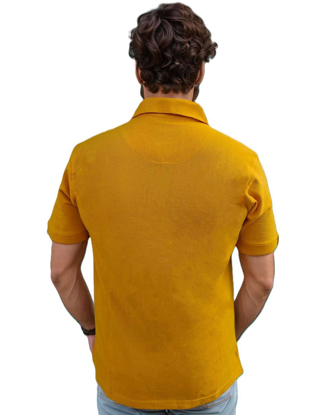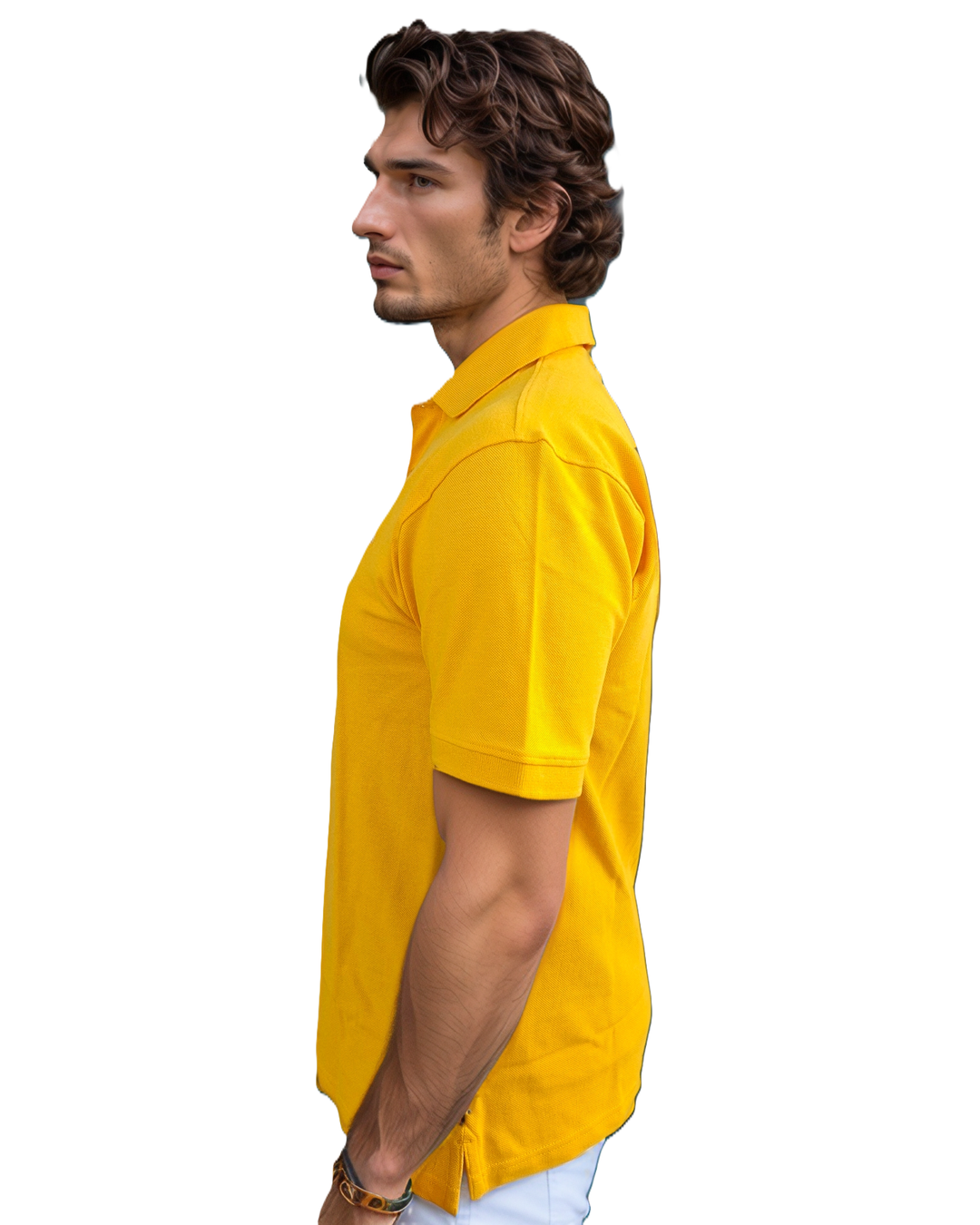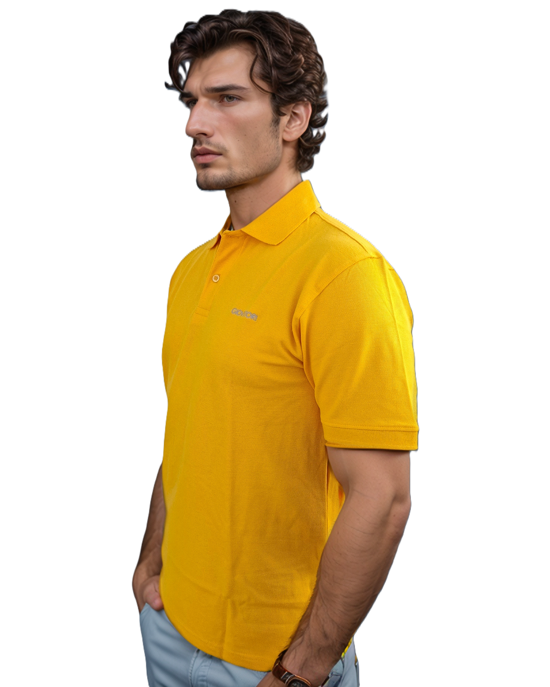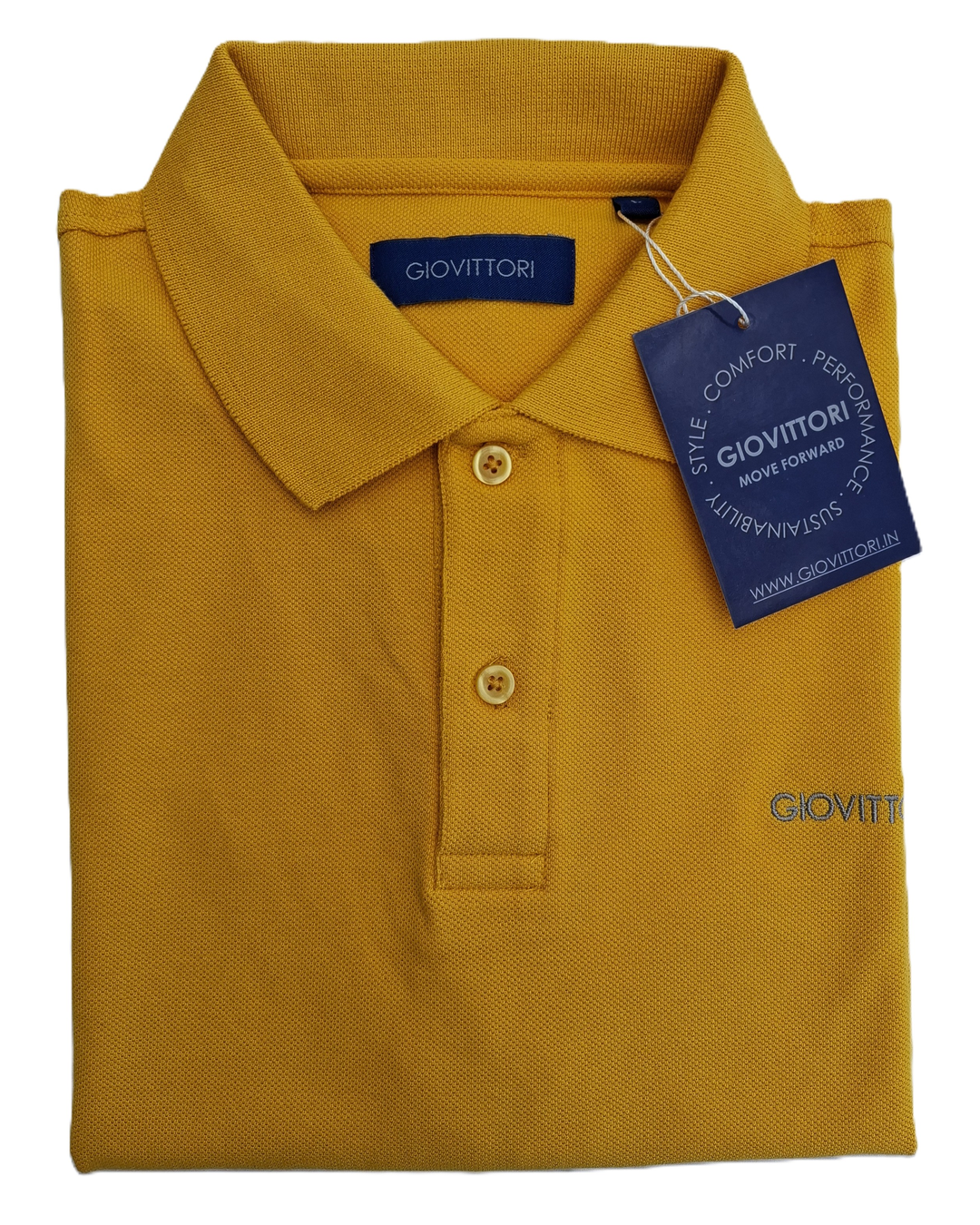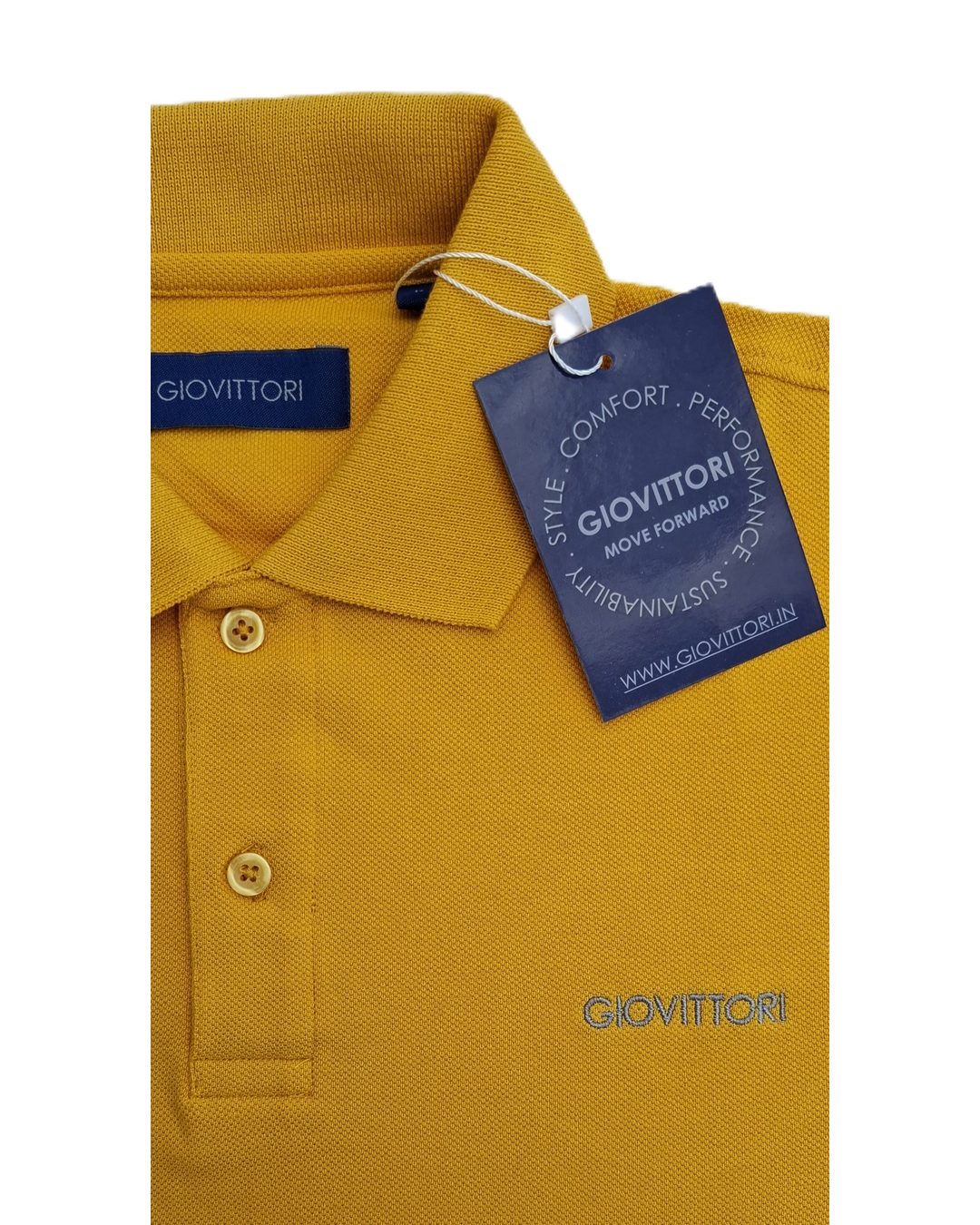 GIOVITTORI Men’s 100% Cotton Collar T-Shirt, Short Sleeve, Yellow