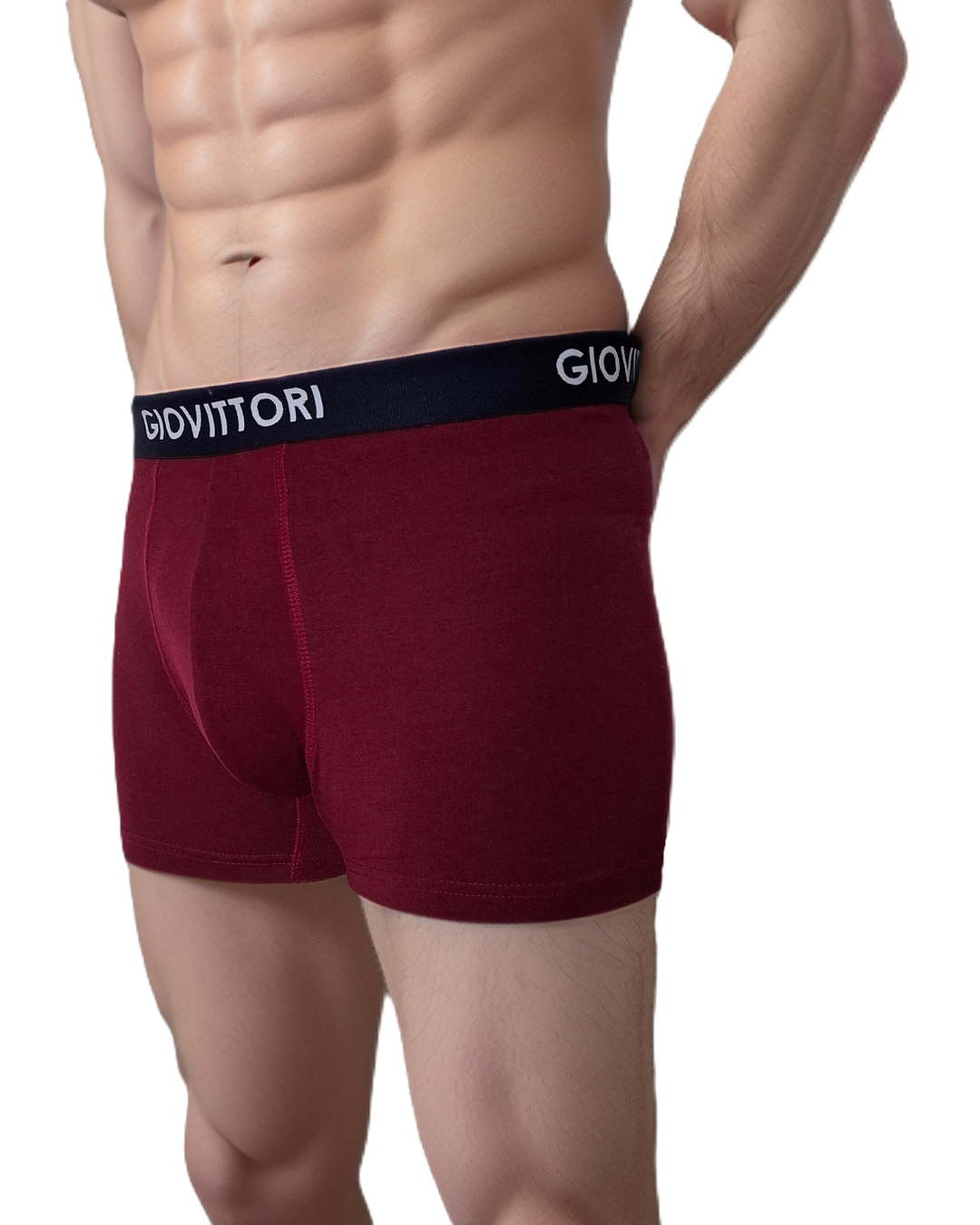 GIOVITTORI Men’s Cotton Underwear Trunks, Elastic Waistband, Burgundy